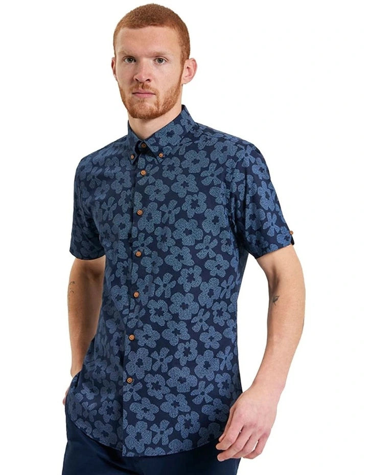 Made from organic cotton, this short sleeve Stipple Floral Print Shirt includes a two finger button down collar and a Ben Sherman branded woven label at the side seam. A regular fit featuring a curved hem.