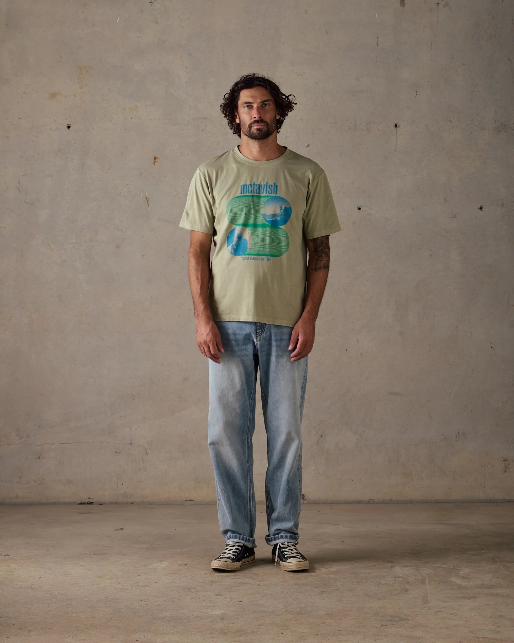 We reached out to guest artist Schuyler Beecroft to create a few graphics for us. We’ve enjoyed his 60s / 70s illustrative style for a while which he combined here with some archive photos shot in our Surfboard Factory in Byron Bay.