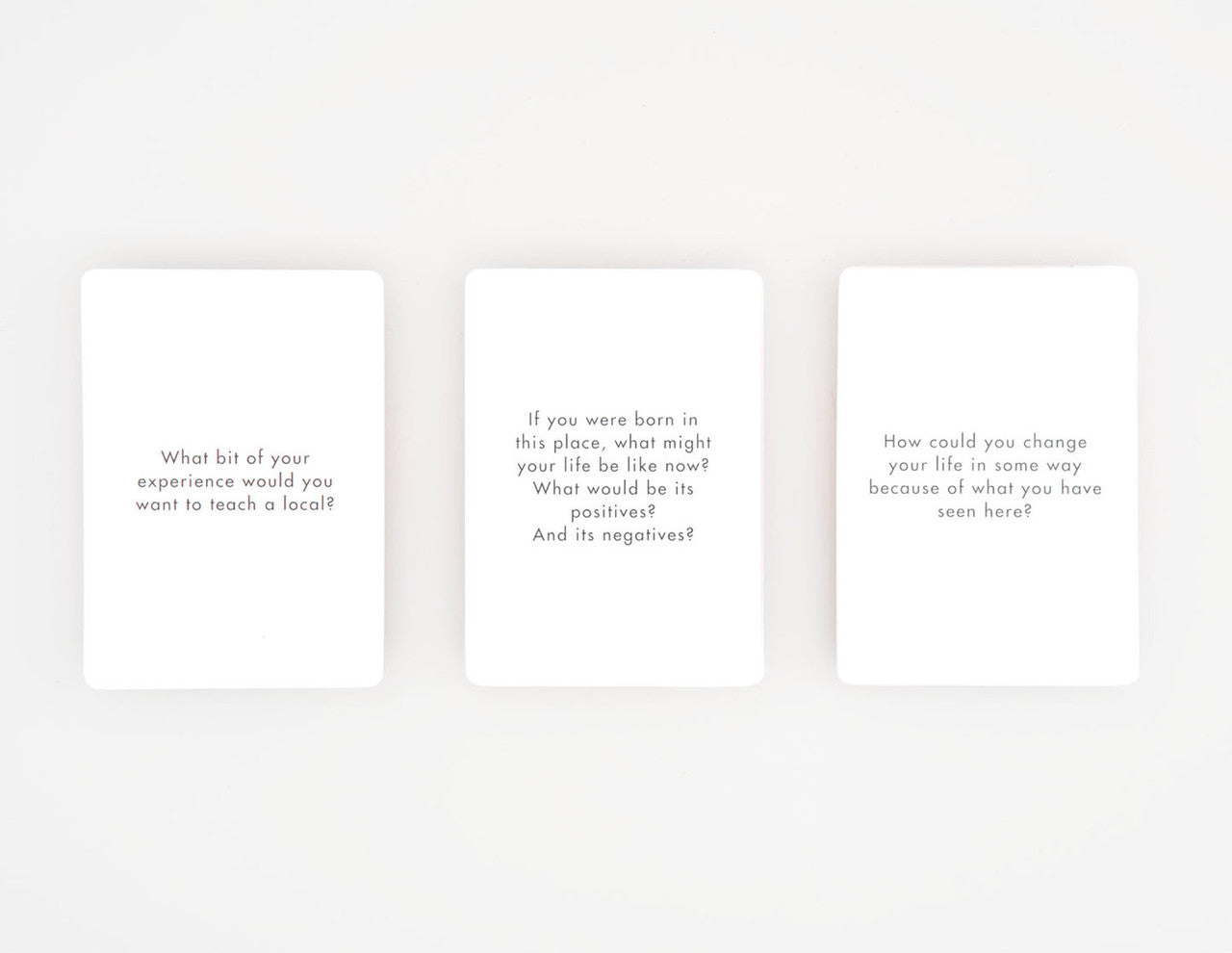 Going travelling can be one of life’s greatest activities – but often, we fail to deepen the experience as much as we should and return home with some of the promise of our trip unrealised. Here is a pack of cards designed to help us get the very best out of travel – and to embed its greatest lessons in our minds.